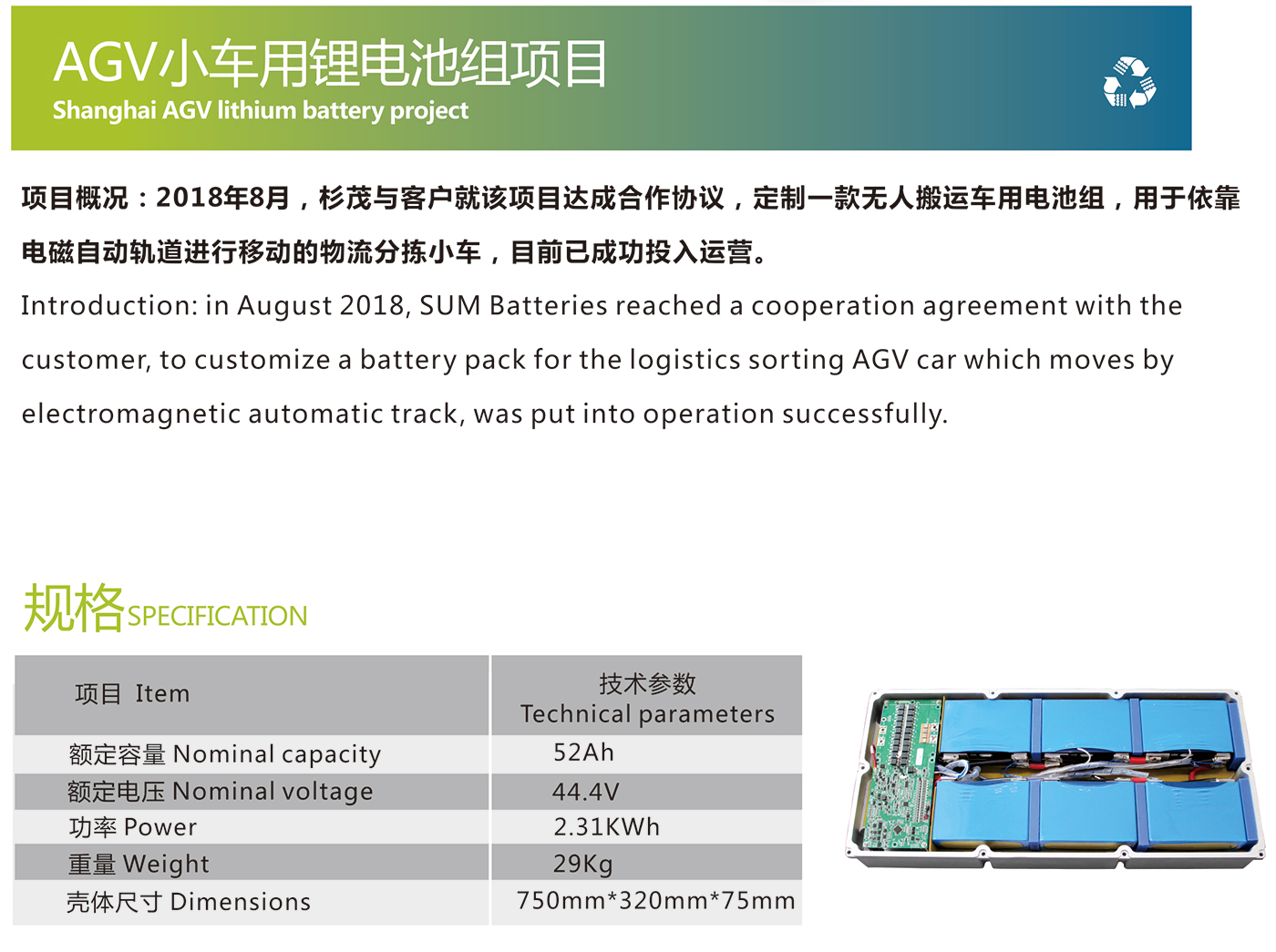 AGV小车用锂电池组项目